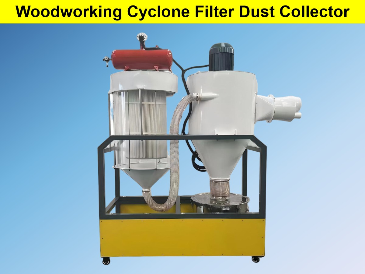 Is meascán de scaradh cioclón agus scagachán cartúis scagaire iad bailitheoirí deannaigh adhmaid-scagaire cioclóin. Comhcheanglaíonn siad na buntáistí a bhaineann le bailitheoirí deannaigh cioclóin maidir le deannach garbh ard-tiúchana a láimhseáil le tréithe ardchruinneas bailitheoirí deannaigh cartúis scagaire chun deannach mín a scagadh. Deartha go sonrach le haghaidh dáileadh leathan méid na gcáithníní de min sáibh agus púdar adhmaid i gceardlanna adhmadóireachta, tá a n-éifeachtúlacht bhaint deannaigh i bhfad níos airde ná mar a bhaineann le trealamh aon-aonad.